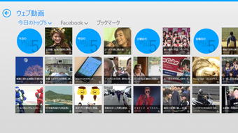 Web で人気の動画が見られる「ウェブ動画」タブからは、昨日の人気トップランク入りビデオのほか、Facebook にログインして友達の動画を視聴することもできます。気に入った動画はブックマークでき、他端末からでも後で視聴することができます。